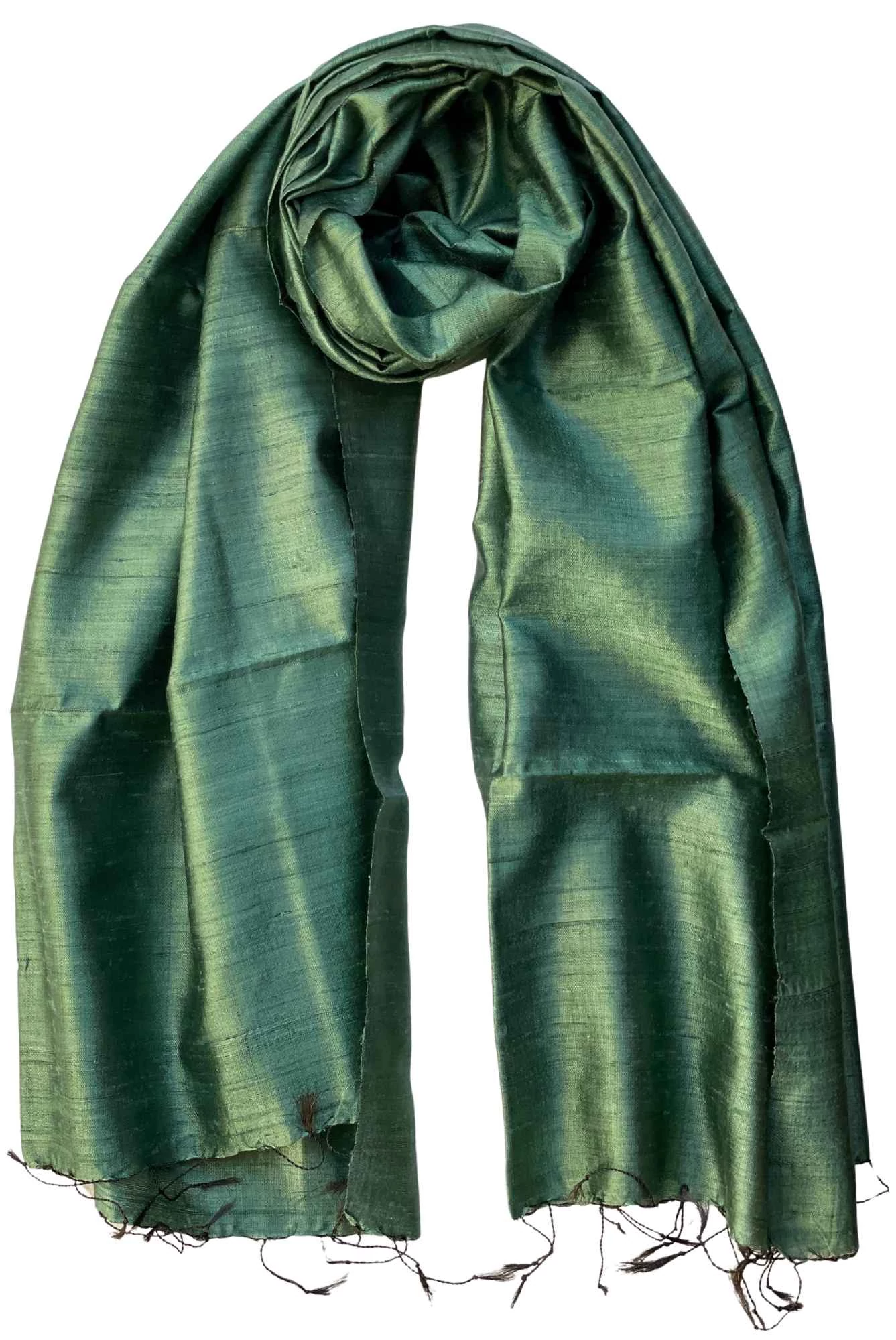 100% valódi hernyóselyem borostyánzöld színű nyers selyem sál 70x180cm