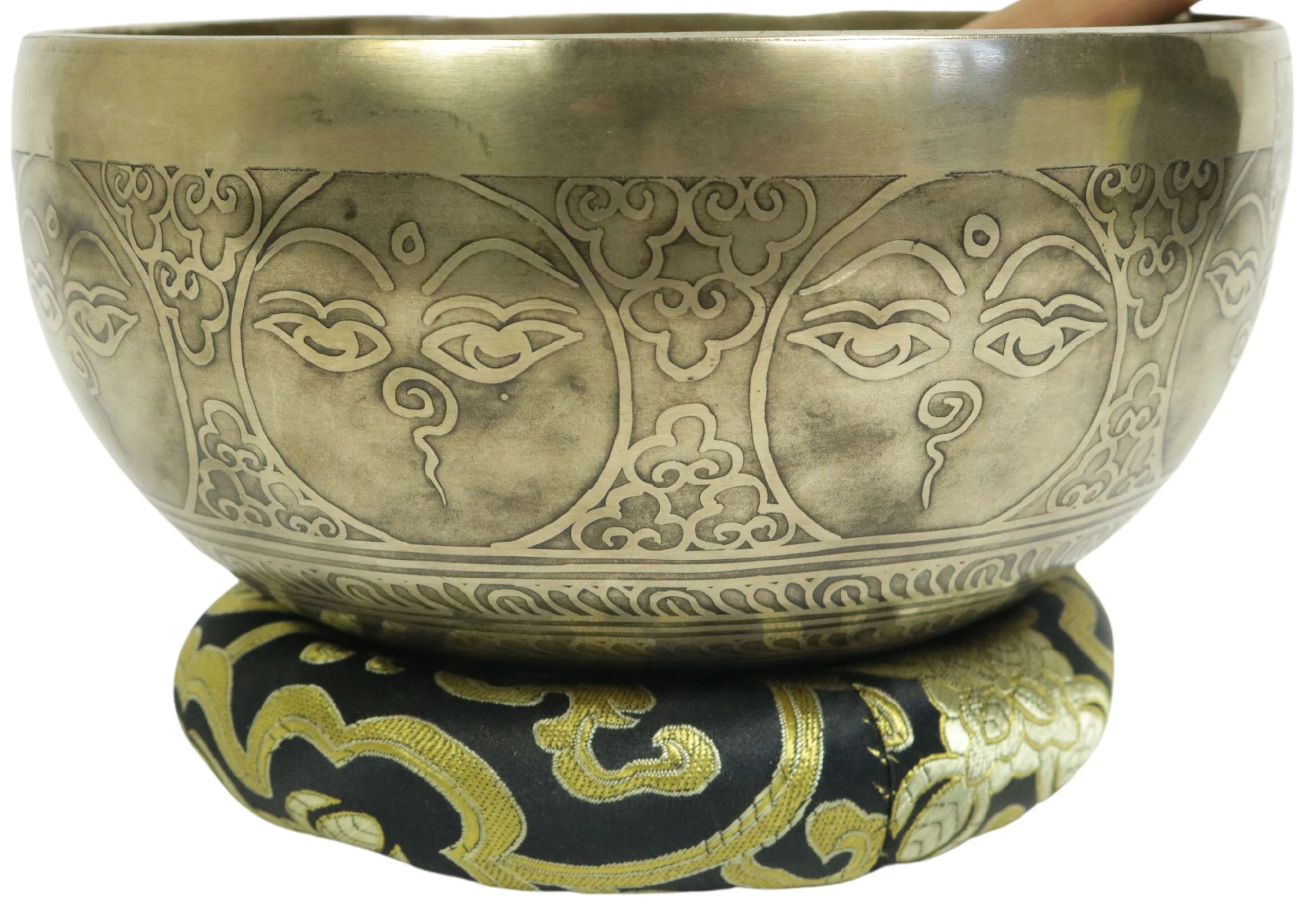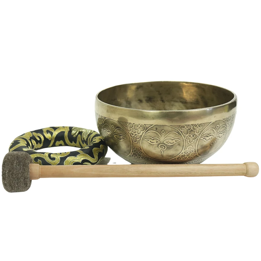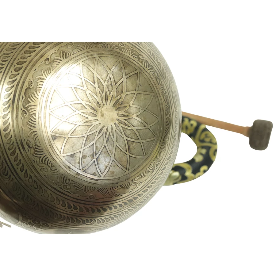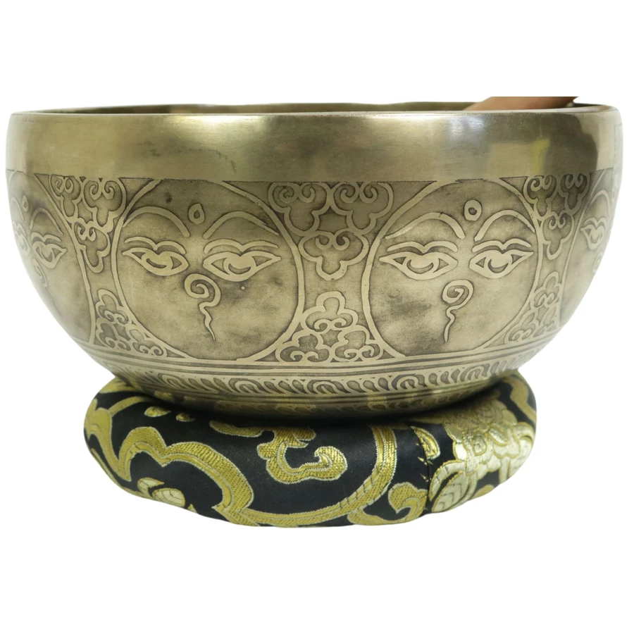 Telihold tibeti hangtál 7 fémből bőrrel bevont fa ütővel, bordó brokát alátét gyűrűvel - videoval