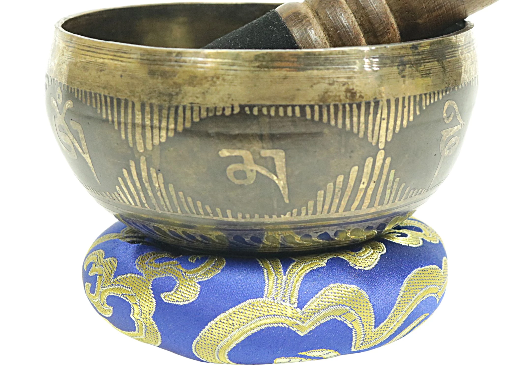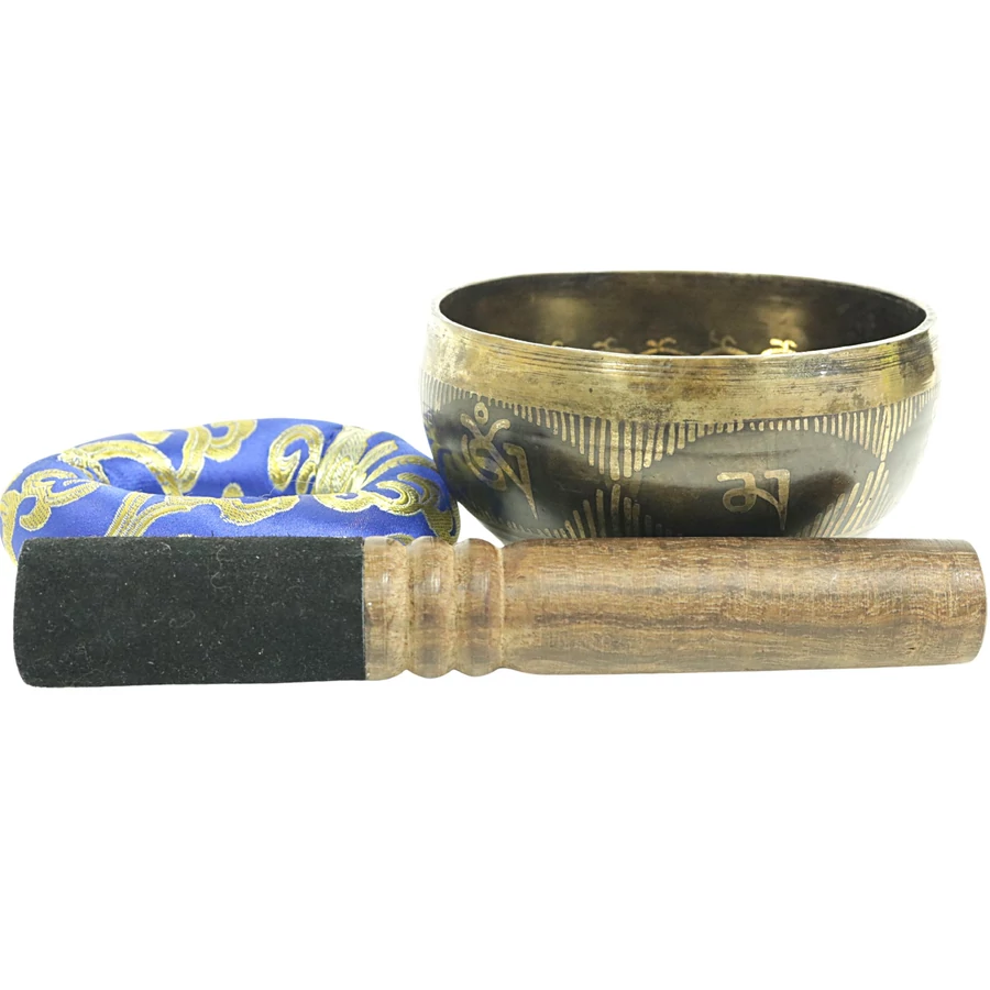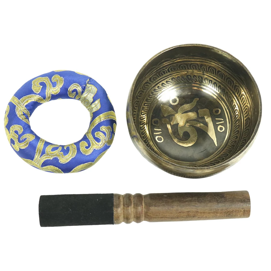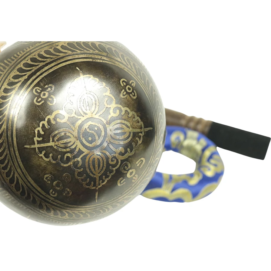Telihold tibeti hangtál 7 fémből bőrrel bevont fa ütővel, bordó brokát alátét gyűrűvel - videoval