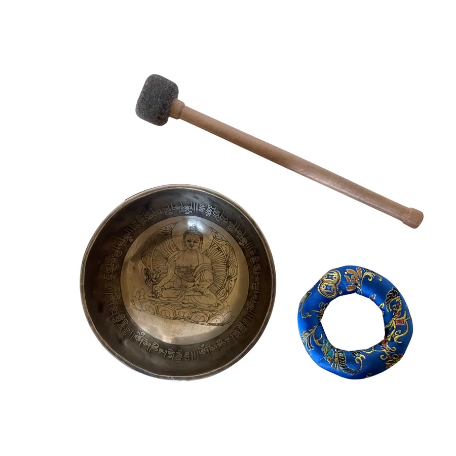 1025 grammos Gyógyító Buddha hangtál 7 fémből kék brokáttal és ütővel - videoval