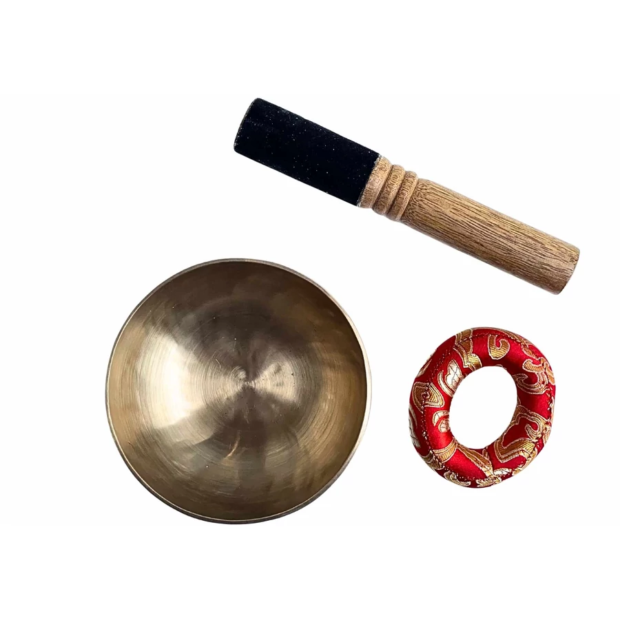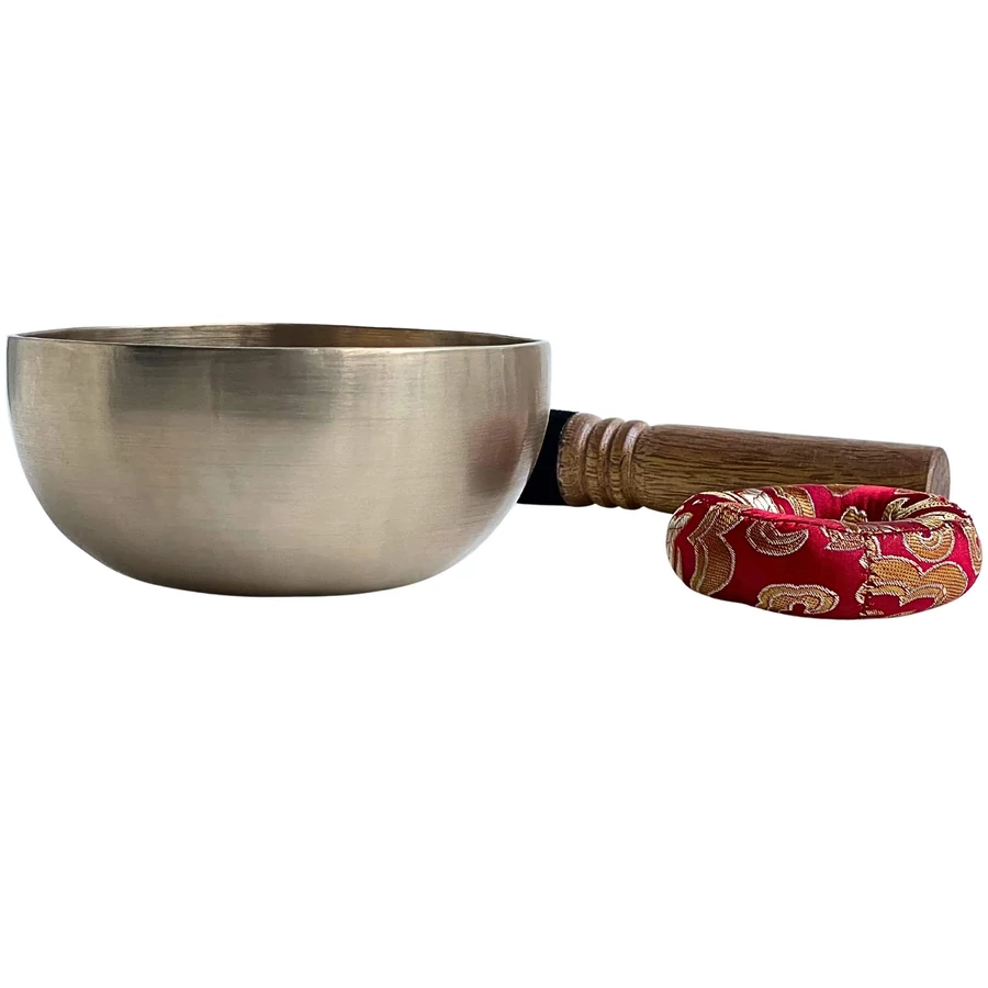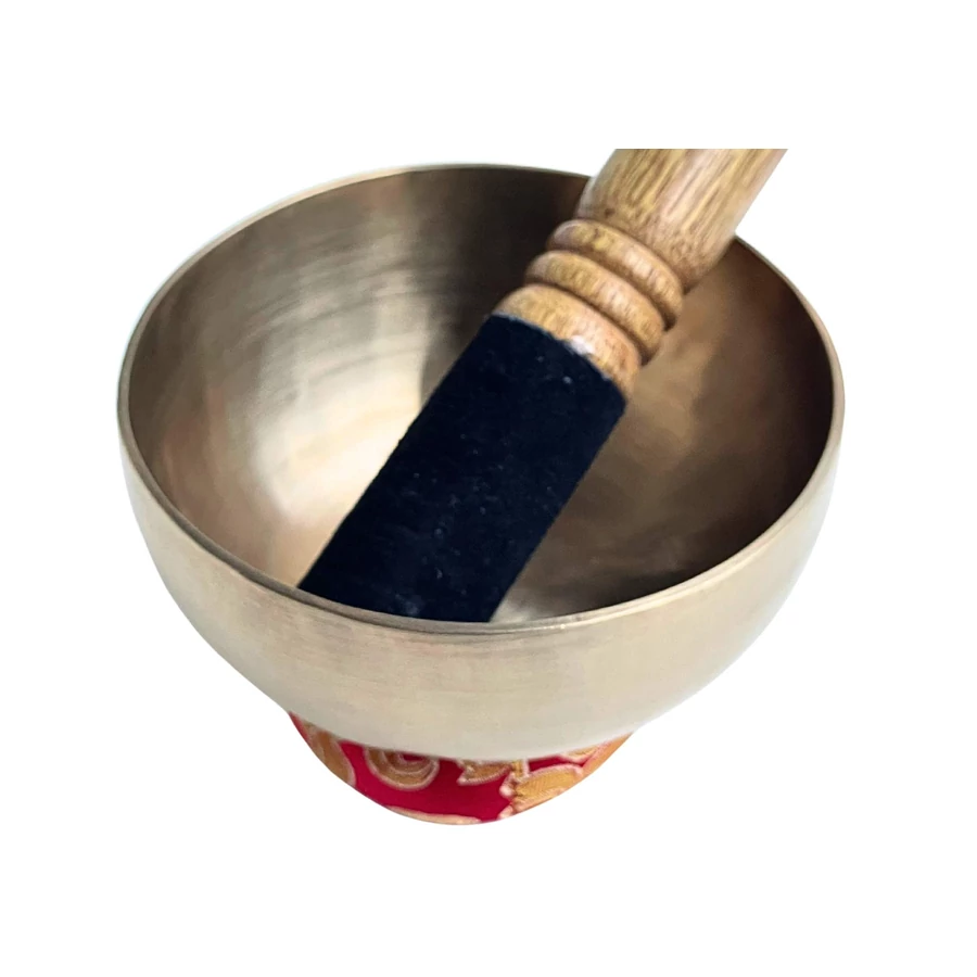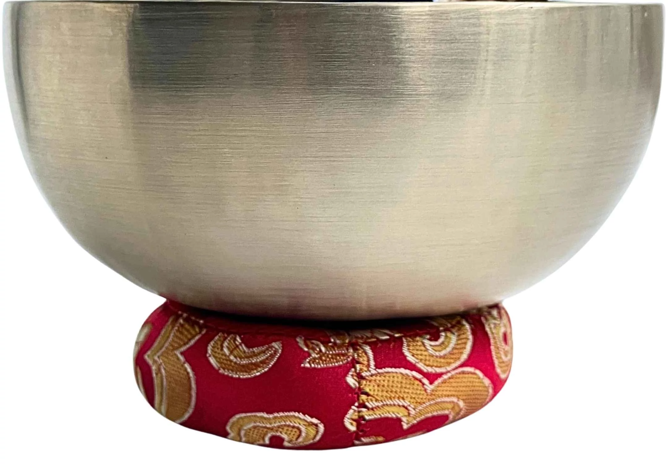 A hangtál piros brokát alátéten pihen – a szín a vitalitás, az életöröm és a teremtő energia jelképe. A piros földeli a szakrális csakra lágy, vízszerű mozgását, segít, hogy az érzések biztonságban szülessenek és szabadon áramoljanak. Minden hang, minden rezdülés egy pillanatnyi belső felszabadulás.