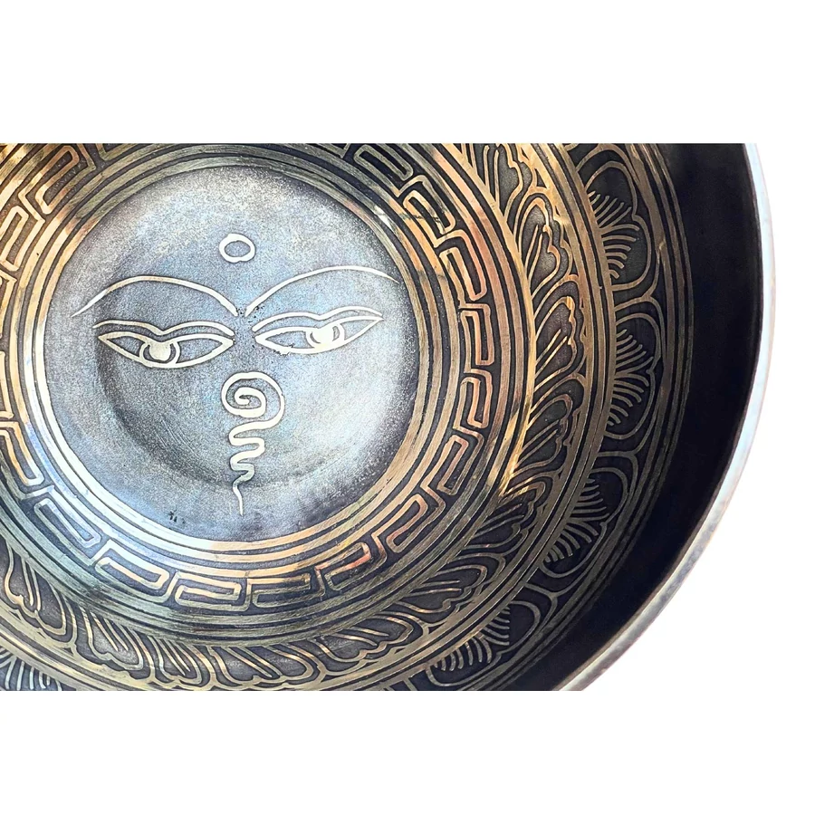 Belsejében a Buddha Bölcsességszeme néz rád – a tiszta látás és megértés jelképe, amely arra emlékeztet, hogy az igazság belülről fakad. Az oldalán körbefut az Om Mani Padme Hum mantra, a béke és együttérzés örök dallama. Az alján a tibeti OM szótag ragyog, az ősrezgés, amelyből minden hang és élet születik.