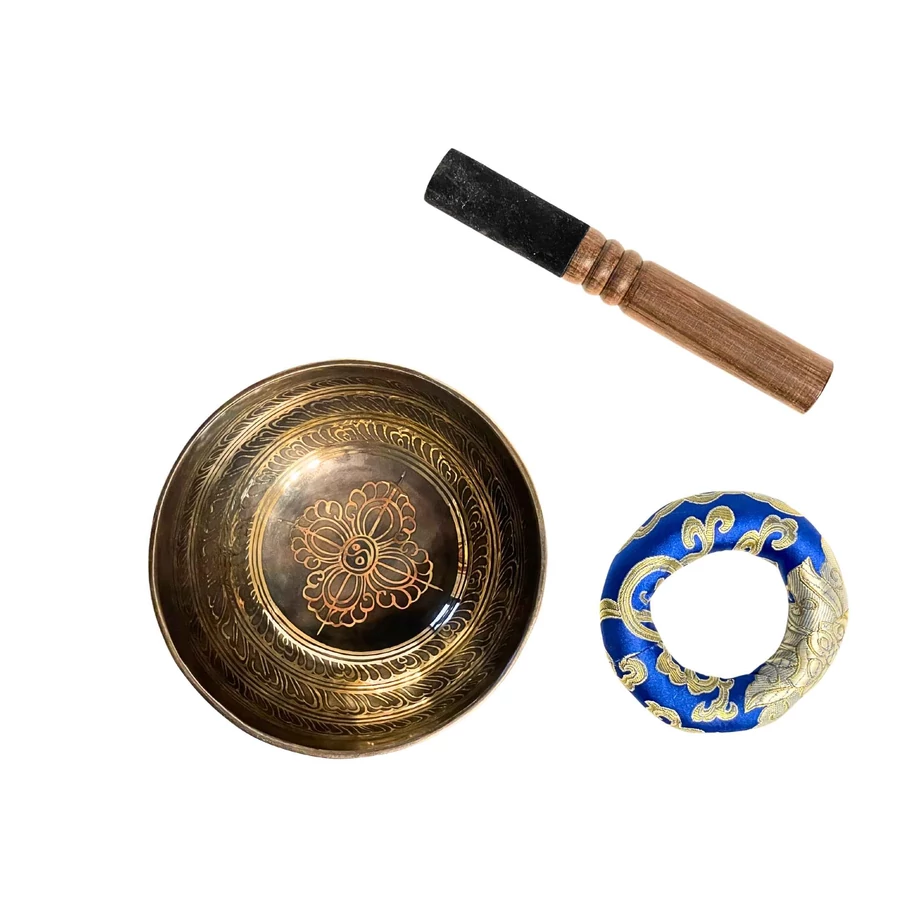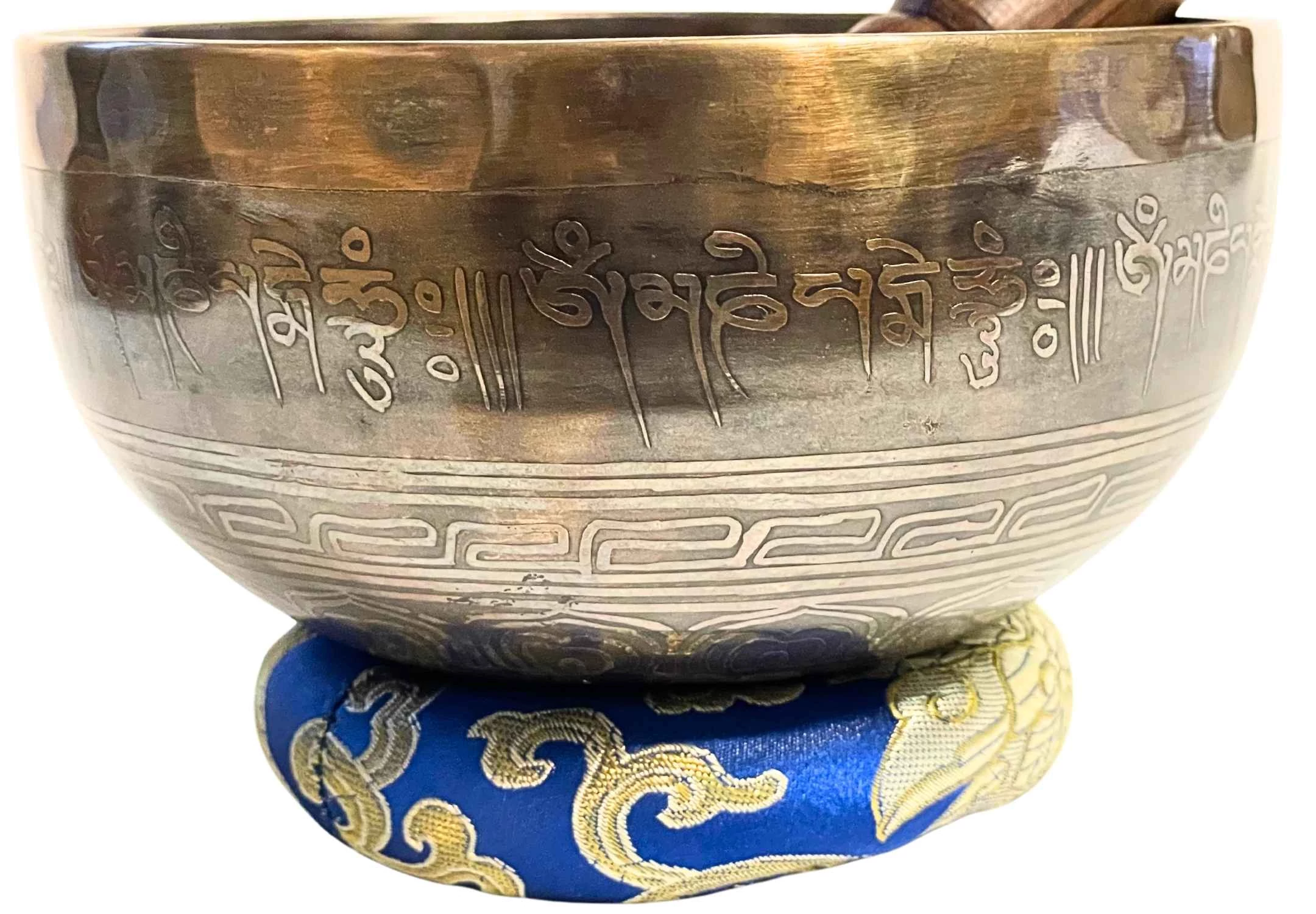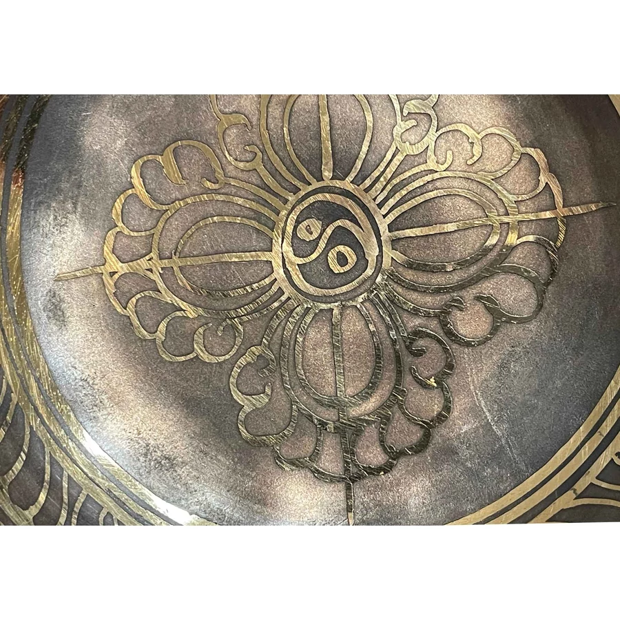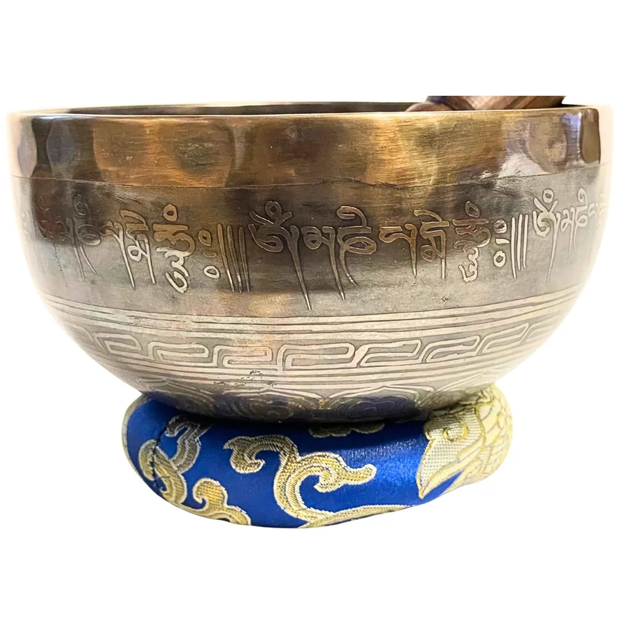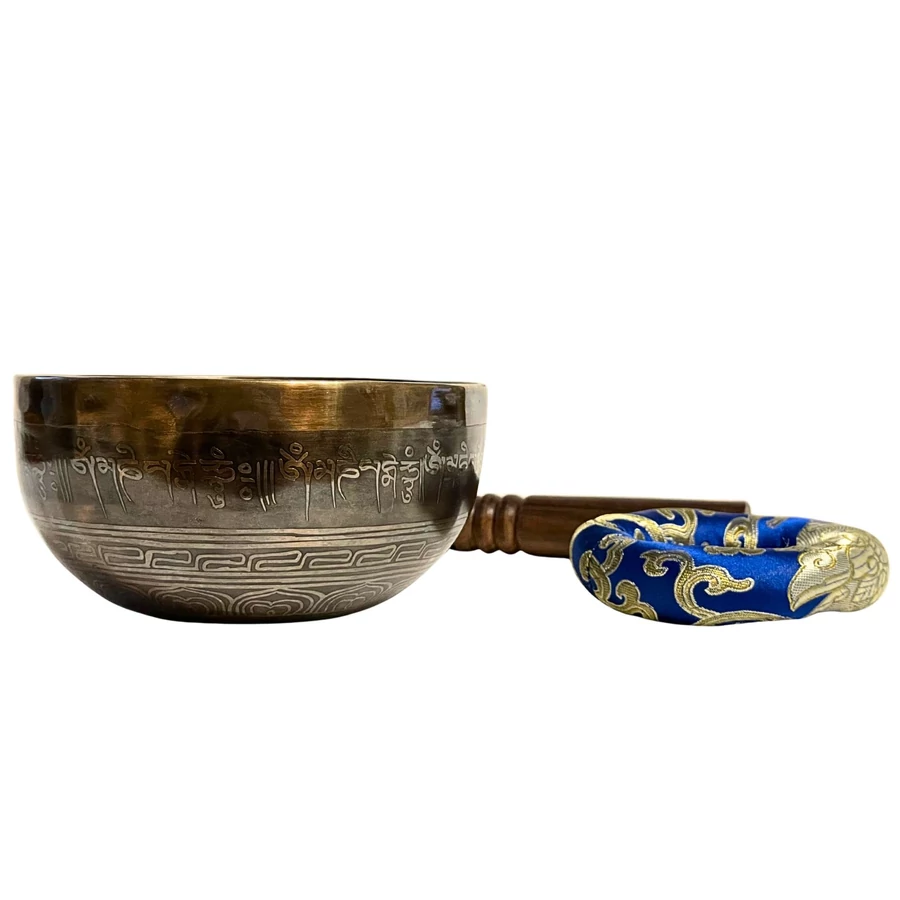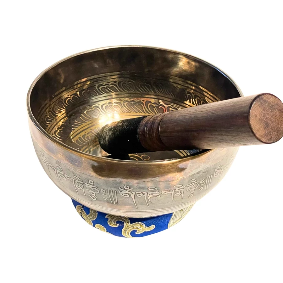 Ez a hangtál a szimbólumok és a hang erejét egyesíti. Belsejében a Dupla Dordzse ragyog – a szilárdság, a védelem és a belső erő jelképe. Oldalán és alján az Om mani padme hum mantra fut körbe, mint egy végtelen áldás, amely minden rezgésnél megtisztít és felemel.
