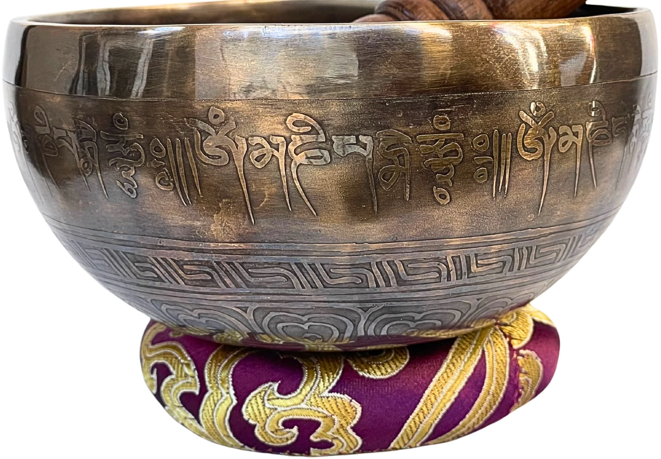 A hangtál 12,5 cm átmérőjű, 6,4 cm magas, 448 gramm súlyú. A bordó brokát alátét méltóságot és nyugalmat sugároz. A bőrrel bevont faütő lágy, telt hangot csal elő belőle. Nézd meg a fotókat, figyeld a szimbólumok finomságát.