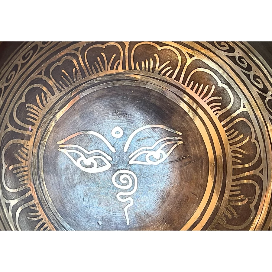 Belsejében Buddha Bölcsességszeme figyel: az éberség és a belső látás szimbóluma. Oldalán az Om mani padme hum mantra öleli körbe – minden szótagja a szeretet, az együttérzés és a védelem rezgése. Az alján a tibeti OM szótag ragyog, a teremtés ősi hangja, amely minden hang és mozdulat forrása.