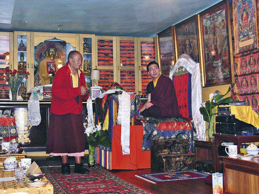 Láma Ngawang tari központjában H. H. Karmapa - val