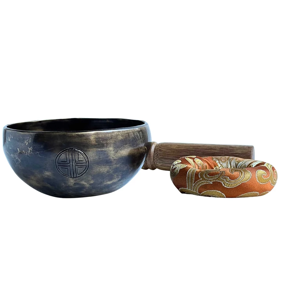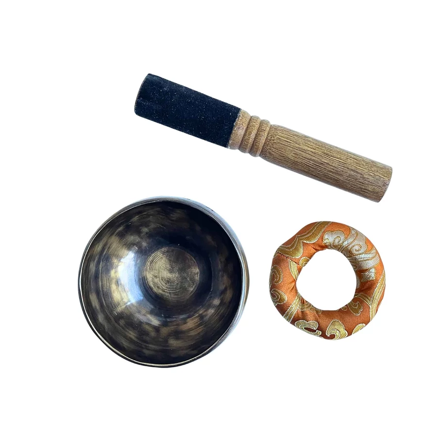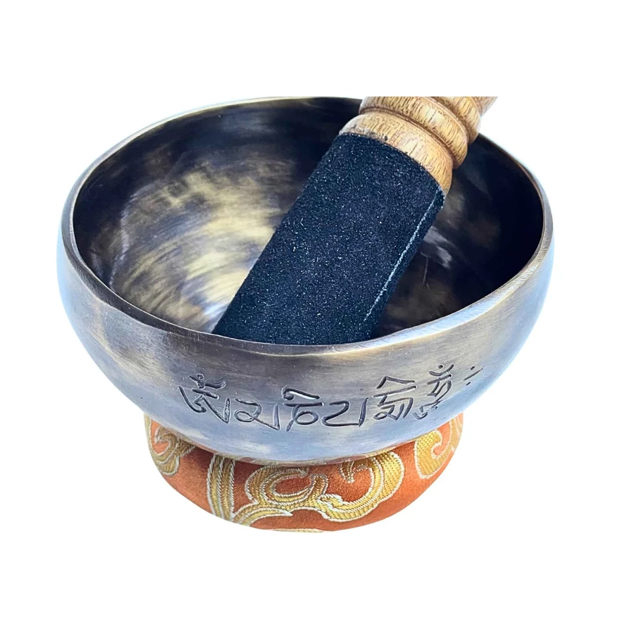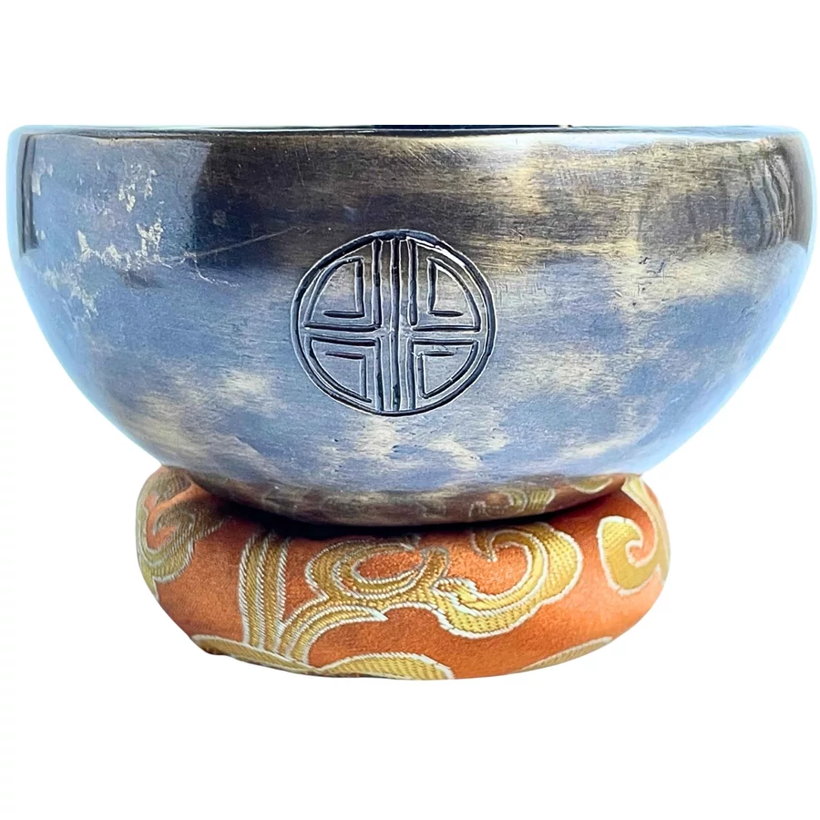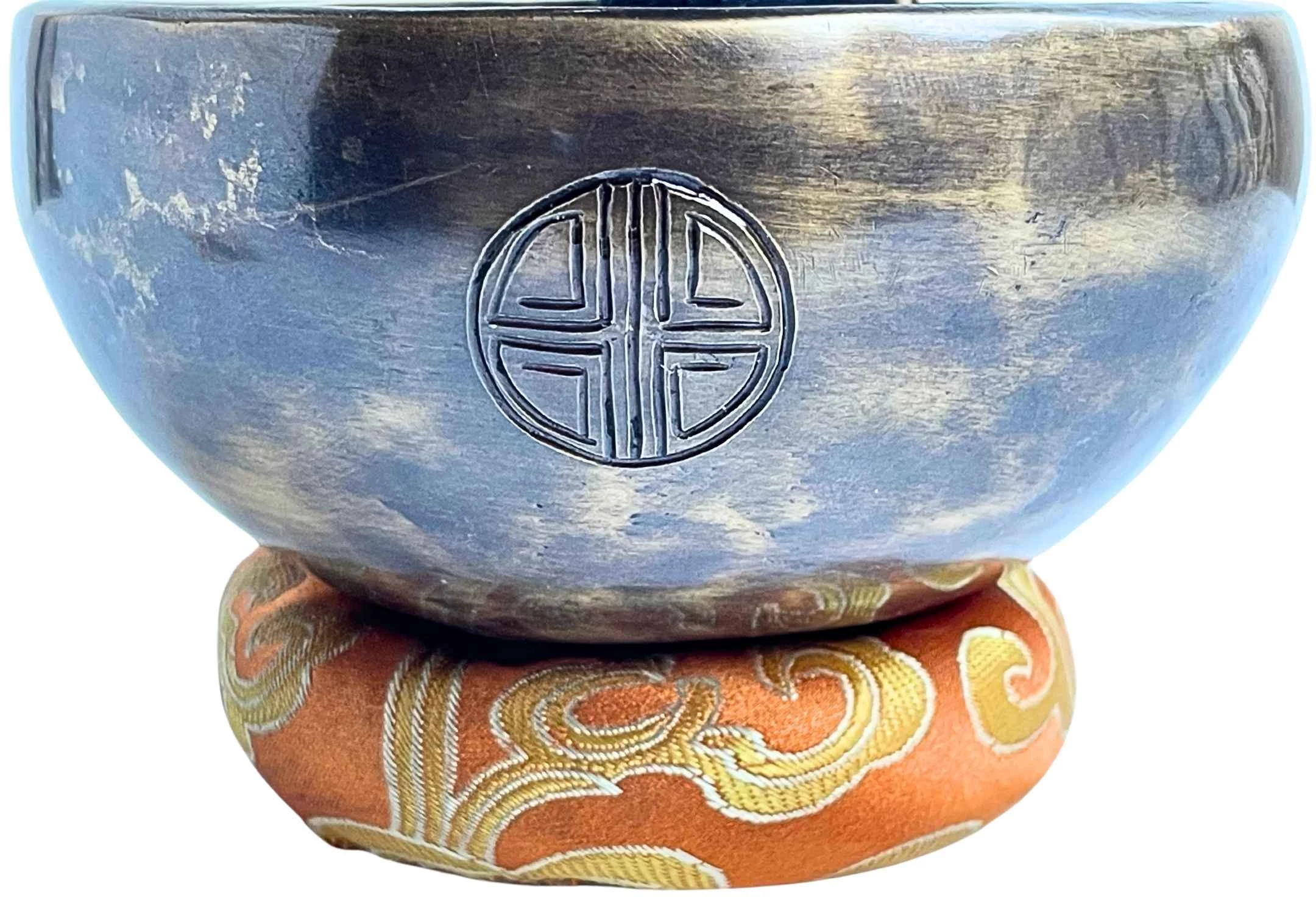 A tál formája arányos és elegáns – 10,5 cm átmérőjű, 5,3 cm magas. A felülete selymes, hideg érintésű, de hangjában ott a melegség. Amikor a bőrrel bevont faütő finoman hozzáér, a hangtál B-hangon, 493 Hz-en szólal meg – a koronacsakra rezgésén. A hang tiszta, fényes, mintha a levegő is átlátszóbbá válna tőle. A rezgés a fejtetőnél érezhető, összekapcsol a csenddel és a belső fényeddel.