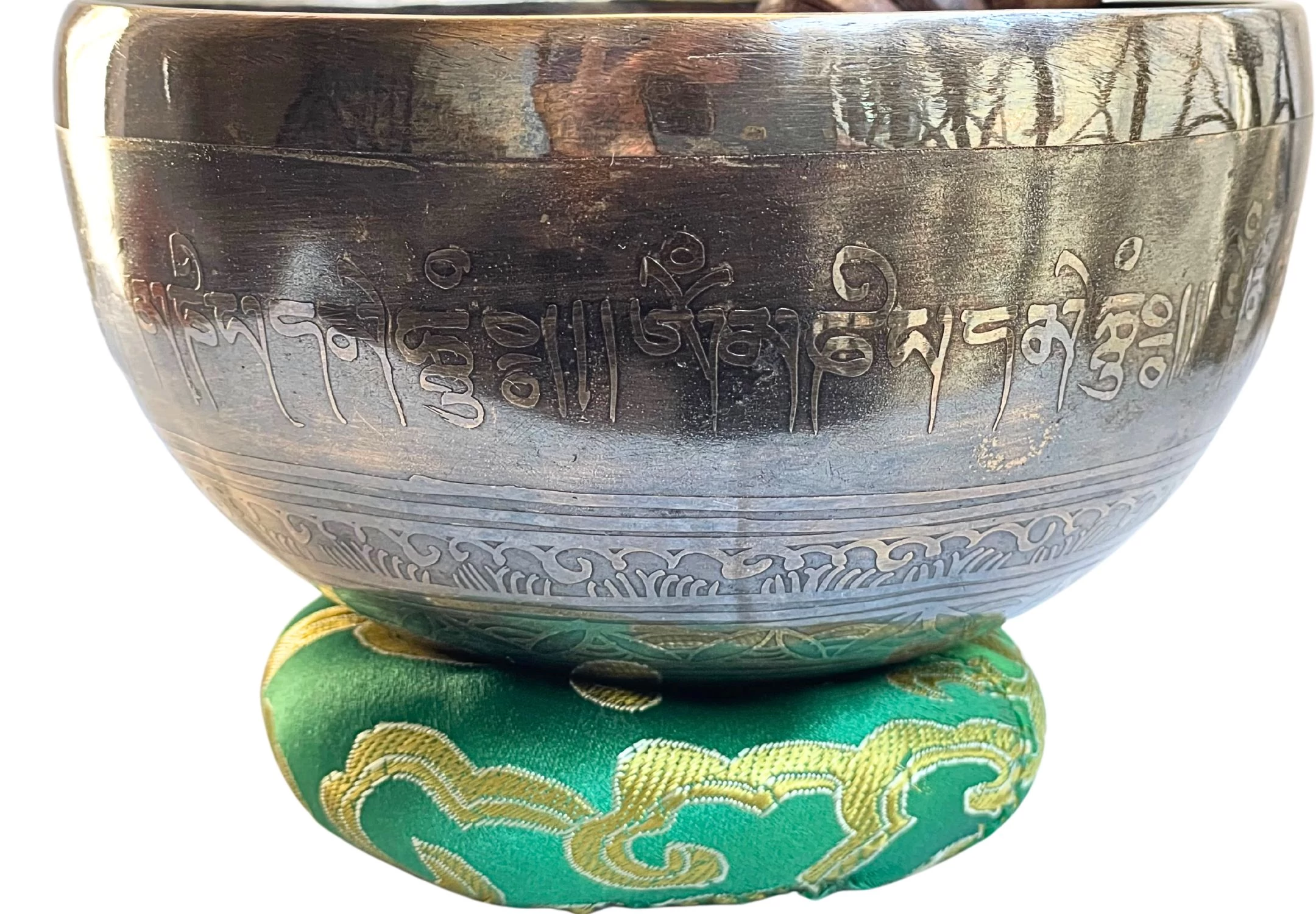 Belsejében a Lótuszvirág nyílik – a lélek ébredésének szimbóluma, amely a sárból születik, mégis makulátlan marad. Oldalán az Om mani padme hum mantra fut körbe tibeti betűkkel, mint egy áldás, amely minden rezdülésben a szeretetet és együttérzést hívja.