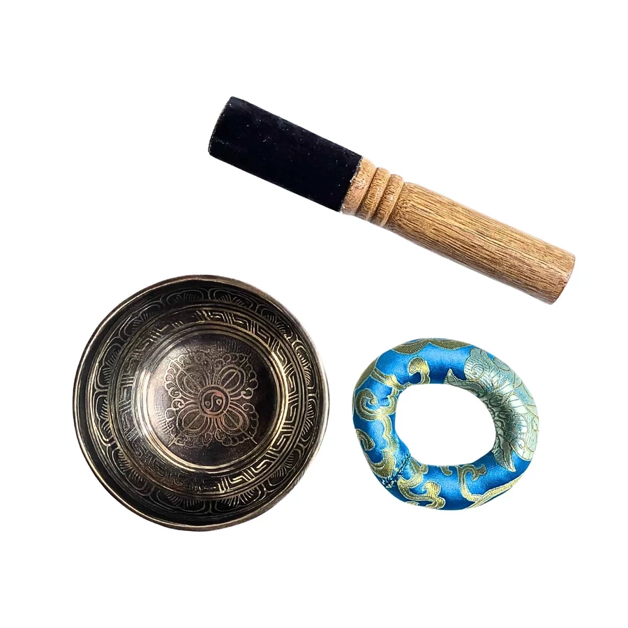 Amikor a bőrrel bevont faütő lágyan megérinti, a hangtál mélyen, tisztán szólal meg. C-hangon, 523 Hz-en rezeg, a gyökércsakra energiáját ébresztve. Ez a hang földel, stabilizál, és segít visszatalálni önmagad középpontjához. Érzed, ahogy a rezgés végigfut a testedben – lágyan oldja a feszültséget, és biztonságot ad.