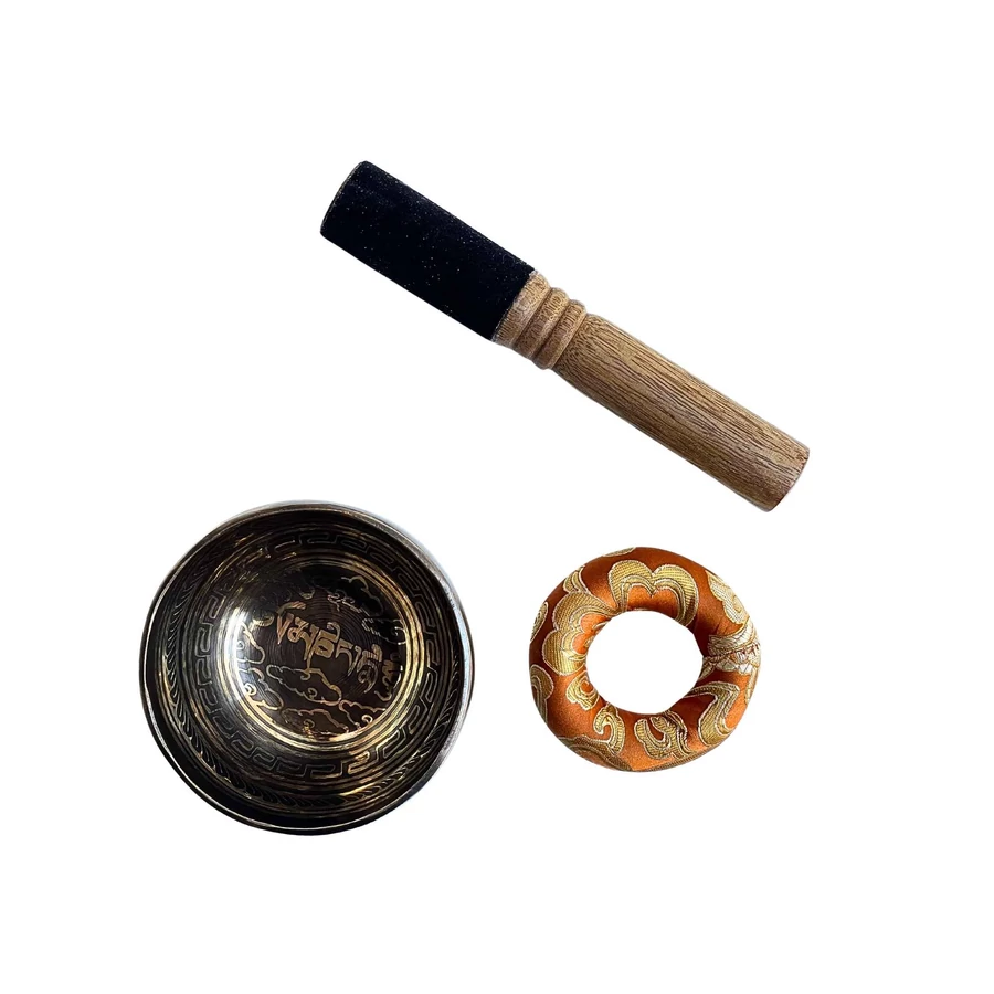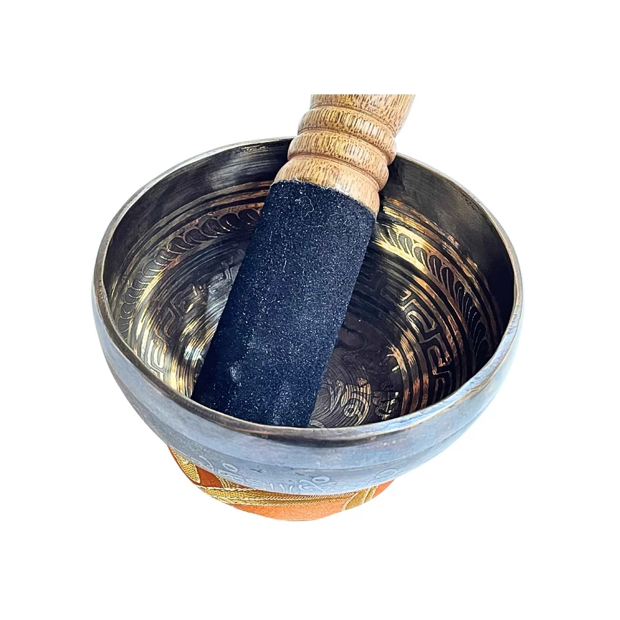 Amikor a bőrrel bevont faütő finoman megérinti, a hangtál C-hangon, 523 Hz-en szólal meg – a gyökércsakra frekvenciáján. A hangja mély, telt és földelő. Érzed, ahogy a rezgés végigfut a testedben, és lelassítja a gondolatokat. A hang földet ad, biztonságot és egyfajta csendes erőt.